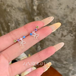 多巴胺彩色锆石蝴蝶结耳钉女小众设计高级感耳环时尚独特绝美耳饰
