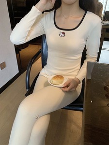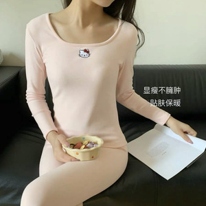 睡衣女春秋新款德绒保暖家居服套装纯色KT猫打底冬天内穿秋衣秋裤
