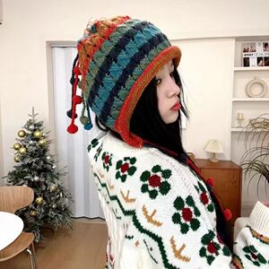毛线帽子女秋冬季护耳套头多巴胺彩虹手工钩针彩色球针织帽显脸小