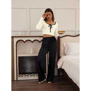 2025亚马逊欧美女士秋季新款舒适休闲撞色长袖长裤两件套居家服