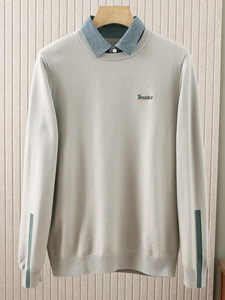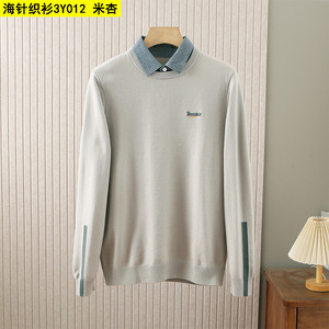 新款海牌剪标假两件针织衫男秋冬季保暖厚款字母刺绣毛衣男3Y012