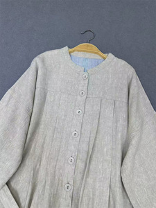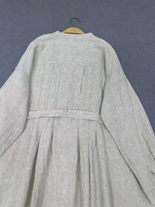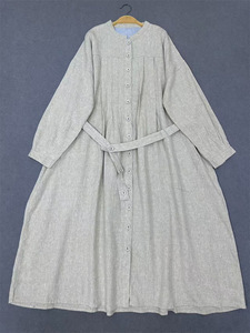 2025秋季新款雨露麻立领长款连衣裙女文艺宽松显瘦纯色简约开衫