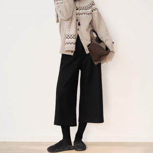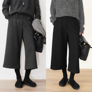 Amyy 简约中高腰双层加厚温暖舒适_混纺直筒七分裤2025秋季