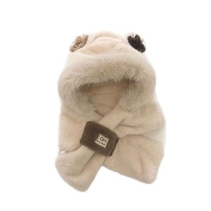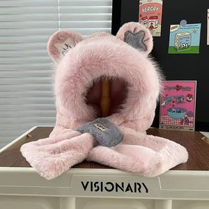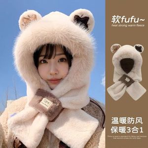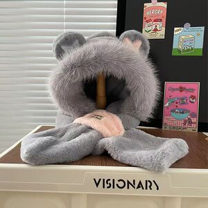毛绒可爱小熊女冬天帽子保暖加厚两件套围脖护耳围巾一体加绒帽子