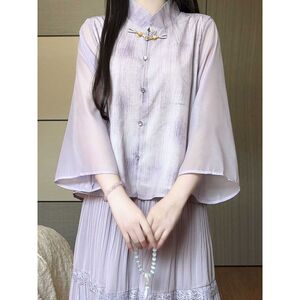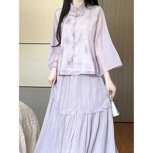 2025年秋季新款新中式套装汉元素紫色上衣半身裙两件套日常可穿
