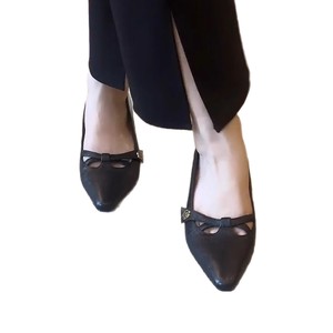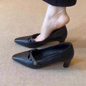 (做货中)复古黑色山茶花粗跟单鞋女气质浅口通勤尖头舒适高跟鞋
