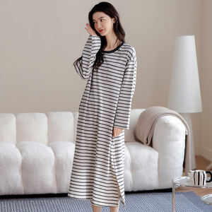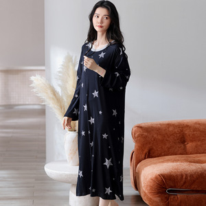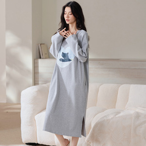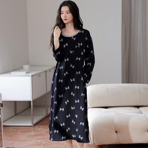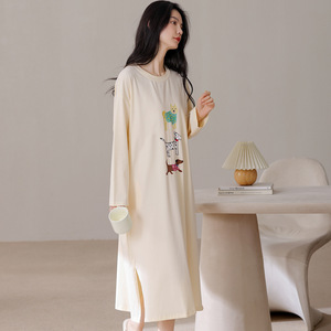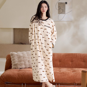 纯棉睡衣女春秋季长袖睡裙2025新款女士宽松大码长裙可外穿家居服