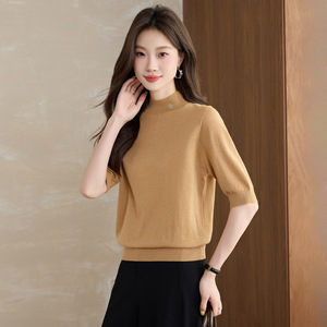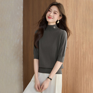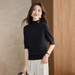 女装2025春秋新款韩版打底毛衣纯色气质七分袖半高领针织衫小衫