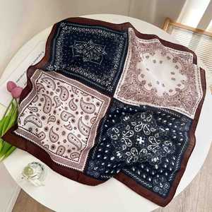 英伦高档四宫格拼色骏马丝绒丝巾复古气质印花围巾春秋时尚方巾