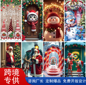 圣诞节门幅门套门帘氛横幅定制做围装饰旗帜挂布新款欧美派对用品