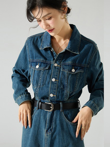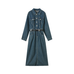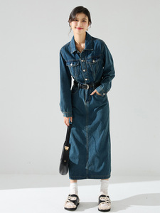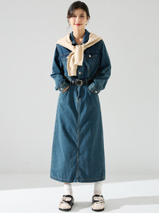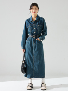 25秋季新款衬衫式长袖外穿复古牛仔做旧水洗棉连衣裙长款女22180