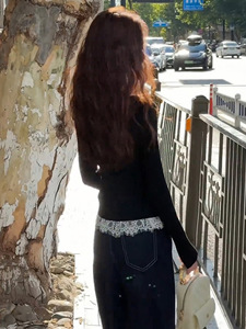 黑色【早秋女装2025新款/秋季流行穿搭/2025早秋打底衫/初秋上衣感/秋天长袖上衣女新款/秋款上