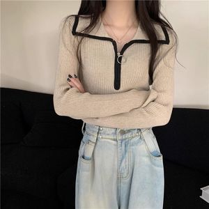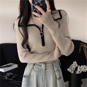 高级感半拉链翻领毛衣女秋冬内搭打底修身显瘦针织衫长袖短款上衣