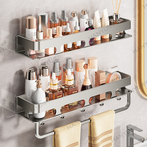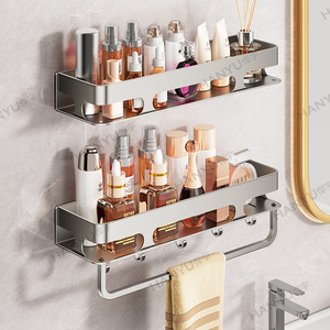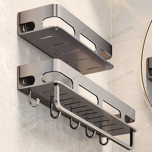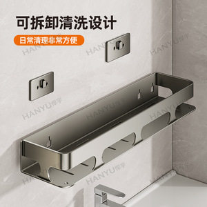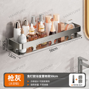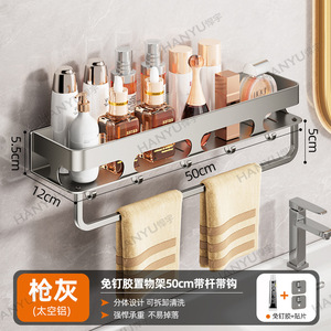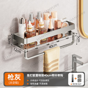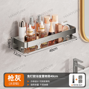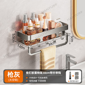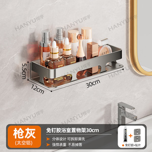 枪灰卫生间浴室置物架免打孔壁挂厕所洗手间洗漱台墙上高级收纳架