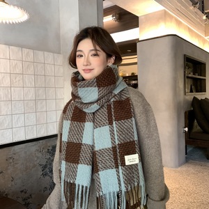 美拉德格纹方块围巾女简约披肩两用冬季保暖围脖流苏时尚2025新款