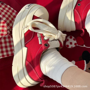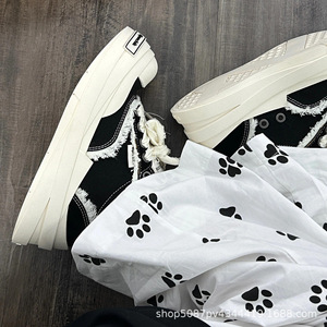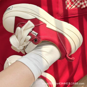 绷带帆布鞋黑白色情侣款大头鞋国潮厚底男女潮流复古百搭增高板鞋