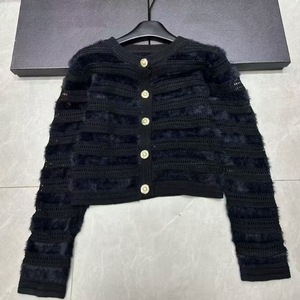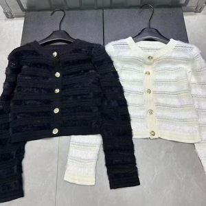 2025新款秋季新款气质名媛长袖白色镂空拼接针织开衫外套上衣女装