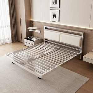 特厚202不锈钢满焊悬浮床架+方管软包床头