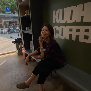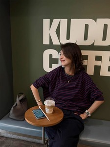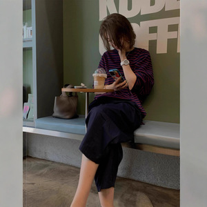 港风chic复古设计感撞色条纹t恤女宽松休闲长袖打底衫上衣早秋季