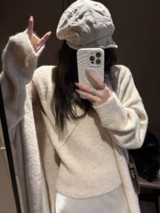 法式时尚针织套装女2025秋冬新款蕾丝拼接针织背心+开衫两件套