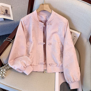 粉色小香风盘扣棒球服外套女短款2025初春秋新中式国风小个子夹克