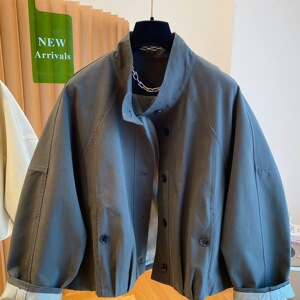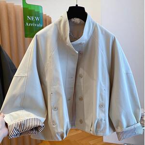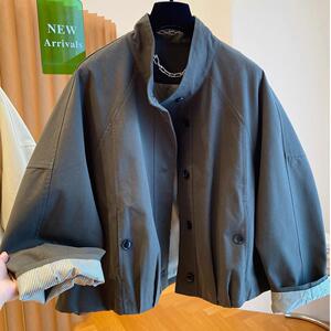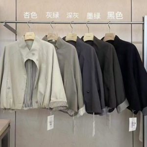 感韩系立领撞色工装外套女秋季新款港风休闲流行夹克上衣