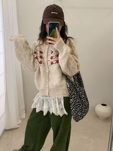 韩系穿搭针织开衫女2025新款秋装宽松休闲设计感绣花毛衣外套上衣