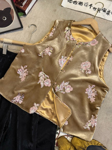 新中式国风重工时尚重工刺绣亮片马甲背心女2025春秋丝绒坎肩上衣