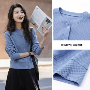 顺其自然系列2025春秋季韩风华夫格肌理四合扣小个子藏肉女式外套