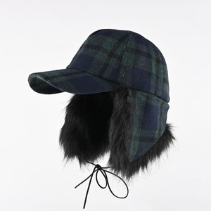 毛绒格纹鸭舌帽男女秋冬季保暖翻边护耳雷锋帽仿皮草长毛毛棒球帽