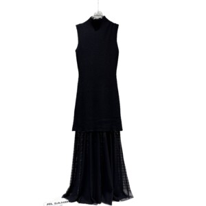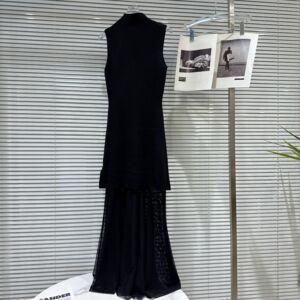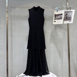 2025秋季新款暗黑风网纱裙摆拼接长款针织背心裙连衣裙女