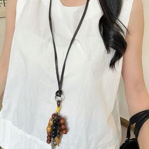 新中式禅意木质串珠吊坠项链文艺复古长款毛衣链个性时尚锁骨链女