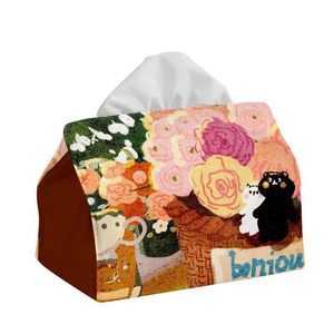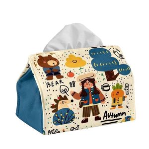 秋日画报帆布纸巾盒创意家用收纳高级感抽纸盒客厅床头柜可爱卡通