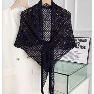 度假防晒冰丝针织披肩罩衫镂空轻奢三角巾女夏季薄款空调衫围巾