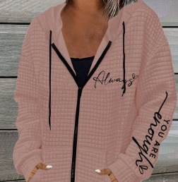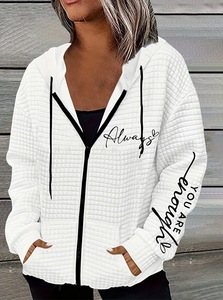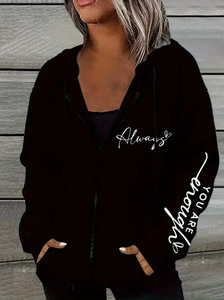 跨境欧美2025秋冬季新款亚马逊印花字母拉链连帽休闲卫衣外套女装