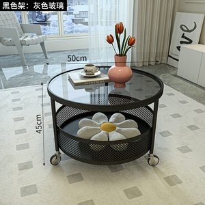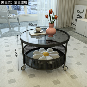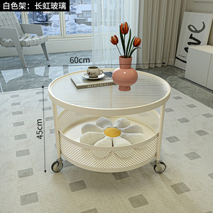 法式奶油风可移动茶几小户型客厅家用沙发边几桌带轮迷你圆桌