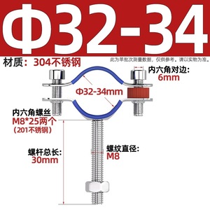 两头管夹Φ32-34调节50-75mm(带胶条)