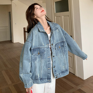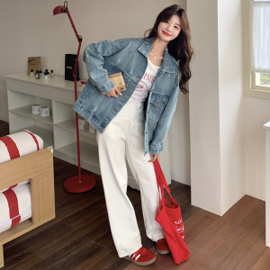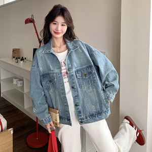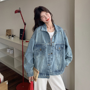 实拍浅蓝色短款牛仔外套女2025春秋新款学院风小个子宽松百搭夹克