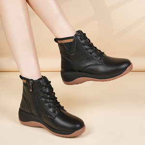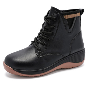 外贸时尚白色靴子女2025冬季新款厚底不累脚女鞋平底女靴坡跟潮流