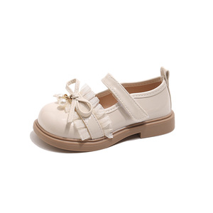 儿童小皮鞋女童鞋2025春秋季新款女孩珍珠蝴蝶结单鞋亮面小童表演