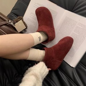 森系厚底皮毛一体雪地靴加绒加厚小土豆雪靴冬季复古真皮博肯女靴