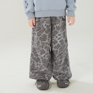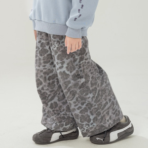 HelloKitty凯蒂猫女童秋季阔腿裤2025新款时尚豹纹洋气休闲裤子