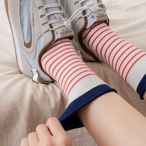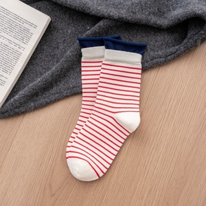 韩系撞色双罗口秋季新款潮流袜条纹女袜透气精梳棉中筒无骨堆堆袜