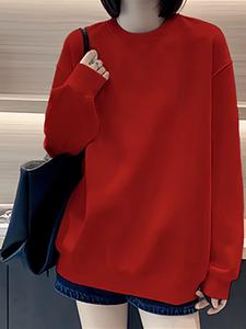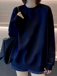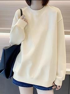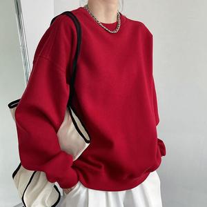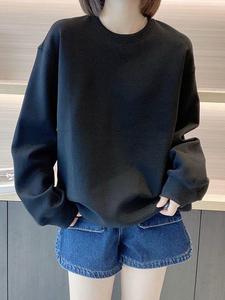 高品质重磅加绒加厚宽松慵懒风纯色卫衣女秋秋百搭情侣上衣外套