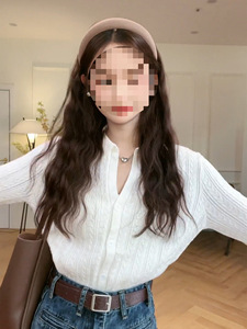 韩系早秋白色polo领针织上衣女2025秋季新款小众设计感内搭打底衫