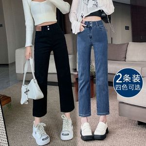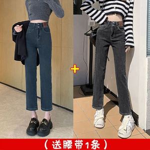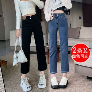 买一送一2025年秋冬新款高腰直筒牛仔裤女小个子九分显瘦烟管裤子