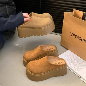 复古圆头英伦风包头拖鞋百搭单鞋2025秋季新款高跟厚底博肯鞋女潮