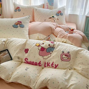 卡通水洗棉毛巾绣学生宿舍三件套斜纹云感棉裸睡级床上用品四件套