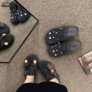 真皮黑色弹孔博肯鞋女秋冬季2025新款可穿懒人包头拖鞋百搭休闲鞋