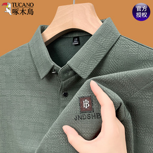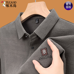 啄木鸟长袖T恤男士棉料polo衫商务休闲弹力翻领抗皱打底衫上衣服